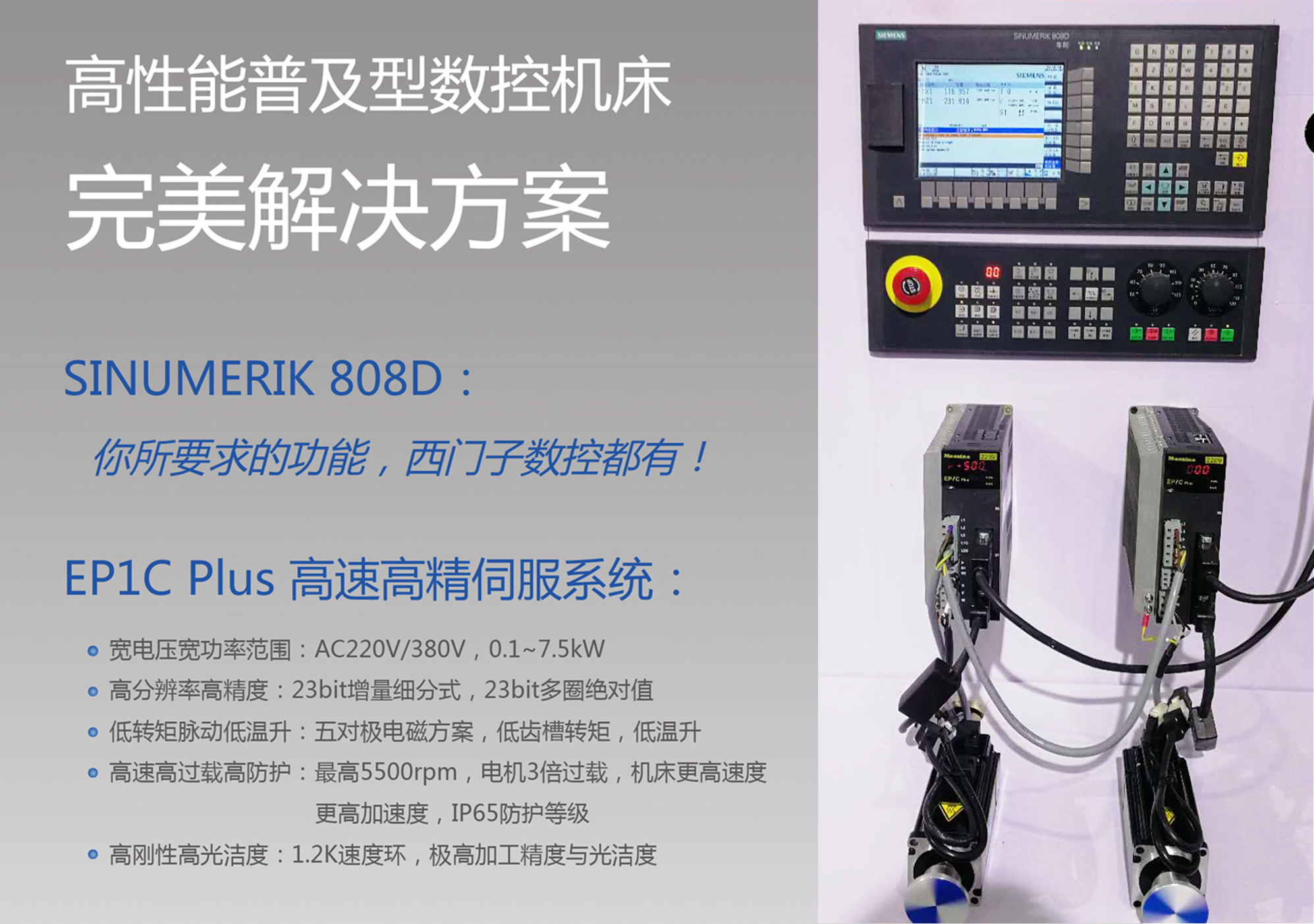 ▲ 西門(mén)子SINUMERIK 808D + EP1C Plus高性能普及型數(shù)控機(jī)床完美解決方案