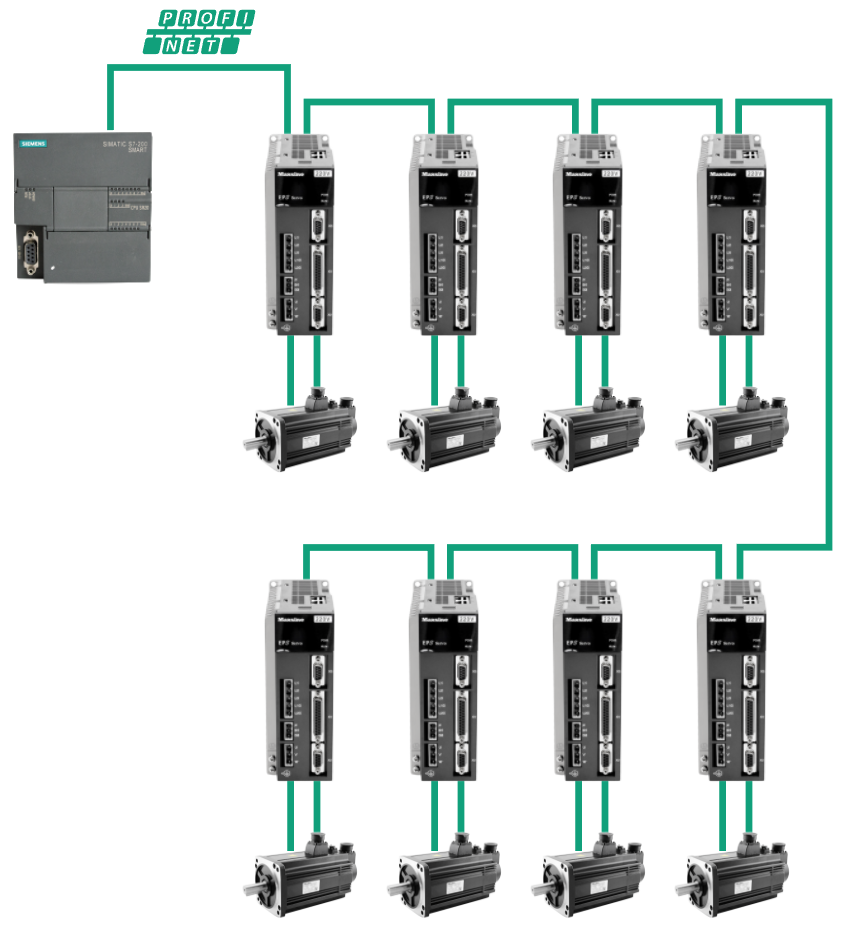西門子S7-200 SMART PLC通過PROFINET接口與EP3E PROFINET伺服驅(qū)動(dòng)器連接。