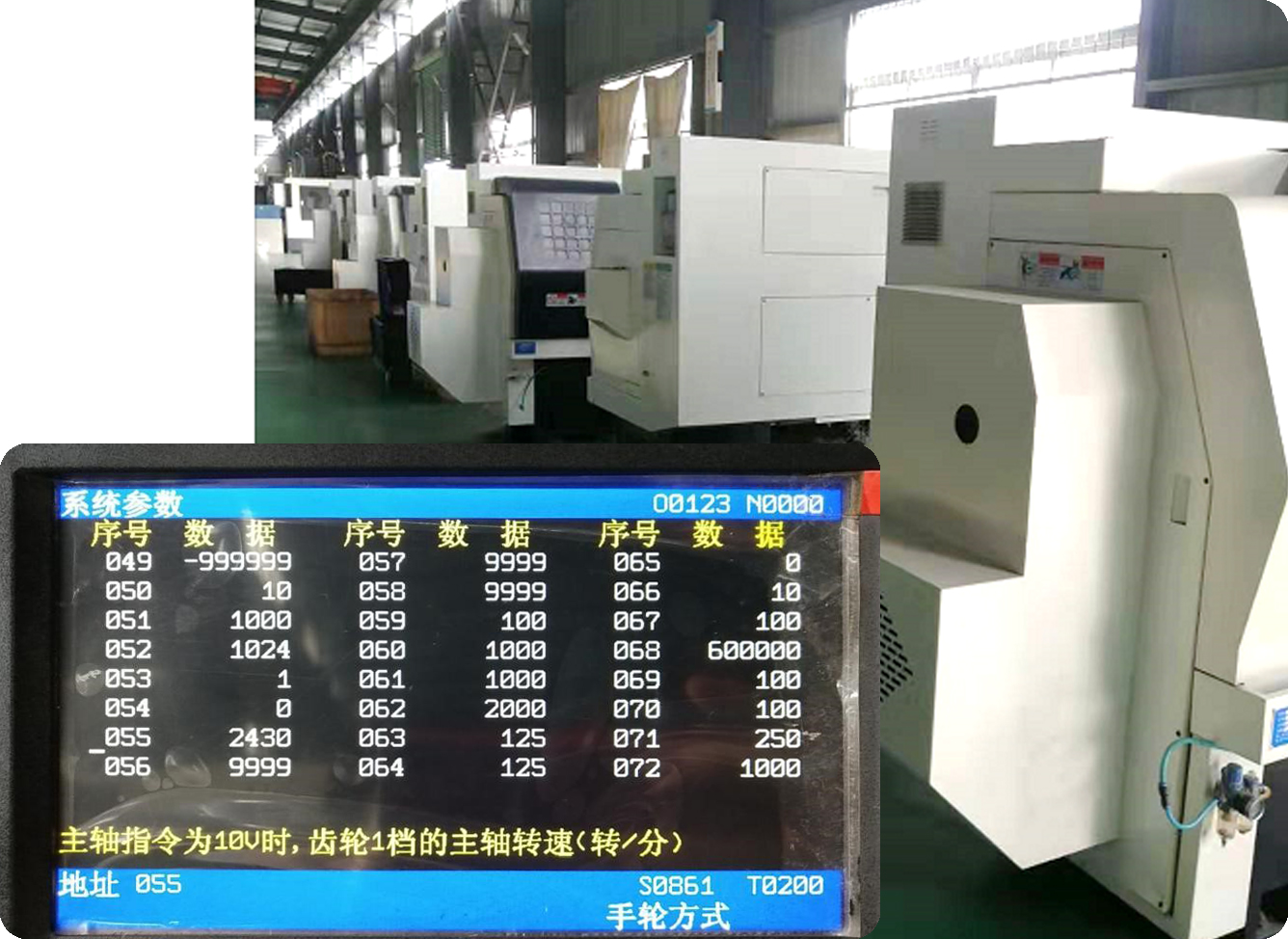 調(diào)節(jié)系統(tǒng)參數(shù),使給定速度值與實際速度值匹配,通過電機(jī)軸皮帶輪和主軸皮帶輪,調(diào)節(jié)P055參數(shù)(針對海德曼數(shù)控系統(tǒng),不同數(shù)控系統(tǒng)參數(shù)不一樣);