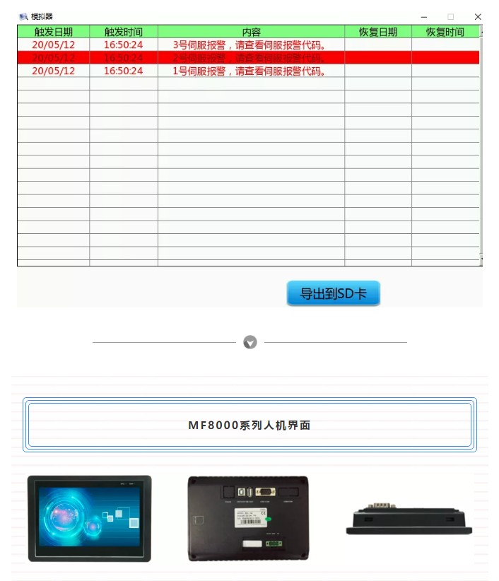 1. 首頁(yè)>文章中心>應(yīng)用教程>邁信電氣MF系列人機(jī)界面_報(bào)警與事件顯示功能案例
