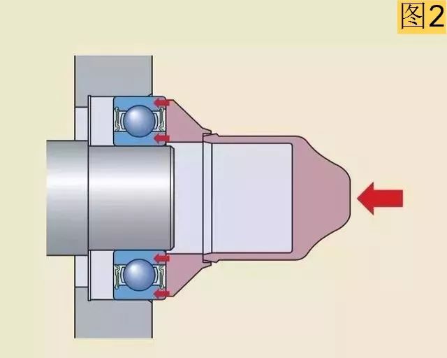 安裝內(nèi)圈過盈配合的軸承時,不能通過外圈和滾動體把力傳遞給內(nèi)圈。這會把軸承滾道和滾動體表面敲壞,使軸承在運(yùn)轉(zhuǎn)時產(chǎn)生噪音并提前損壞。正確的方法應(yīng)該用套筒直接把力作用在內(nèi)圈端面上。