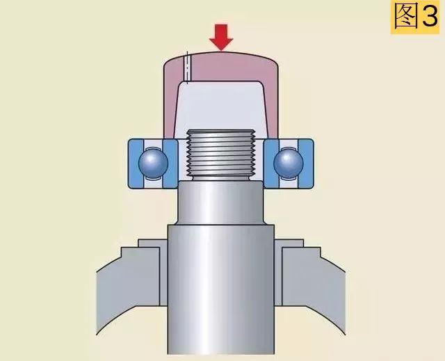 安裝配合不是太緊的小軸承時,可以通過一個套筒(圖2、圖3)并以錘擊的方法,輕輕敲擊套筒把軸承裝到合適的位置。敲擊時應(yīng)盡量均勻的作用在軸承套圈上,以防止軸承傾斜或歪斜。