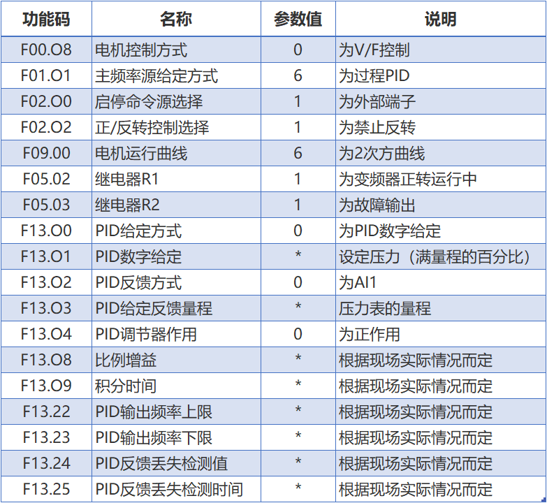 在主要功能預(yù)置方面,最高頻率應(yīng)以電動(dòng)機(jī)的額定頻率為變頻器的最高工作頻率。升、降速時(shí)間在采用變頻器內(nèi)置PID調(diào)節(jié)。升、降速時(shí)間應(yīng)盡量設(shè)定得短一些,以免影響由PID調(diào)節(jié)器決定的動(dòng)態(tài)響應(yīng)過(guò)程。控制原理如下:
